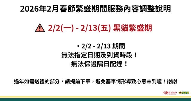 ‧2/2 - 2/13 物流繁盛期間